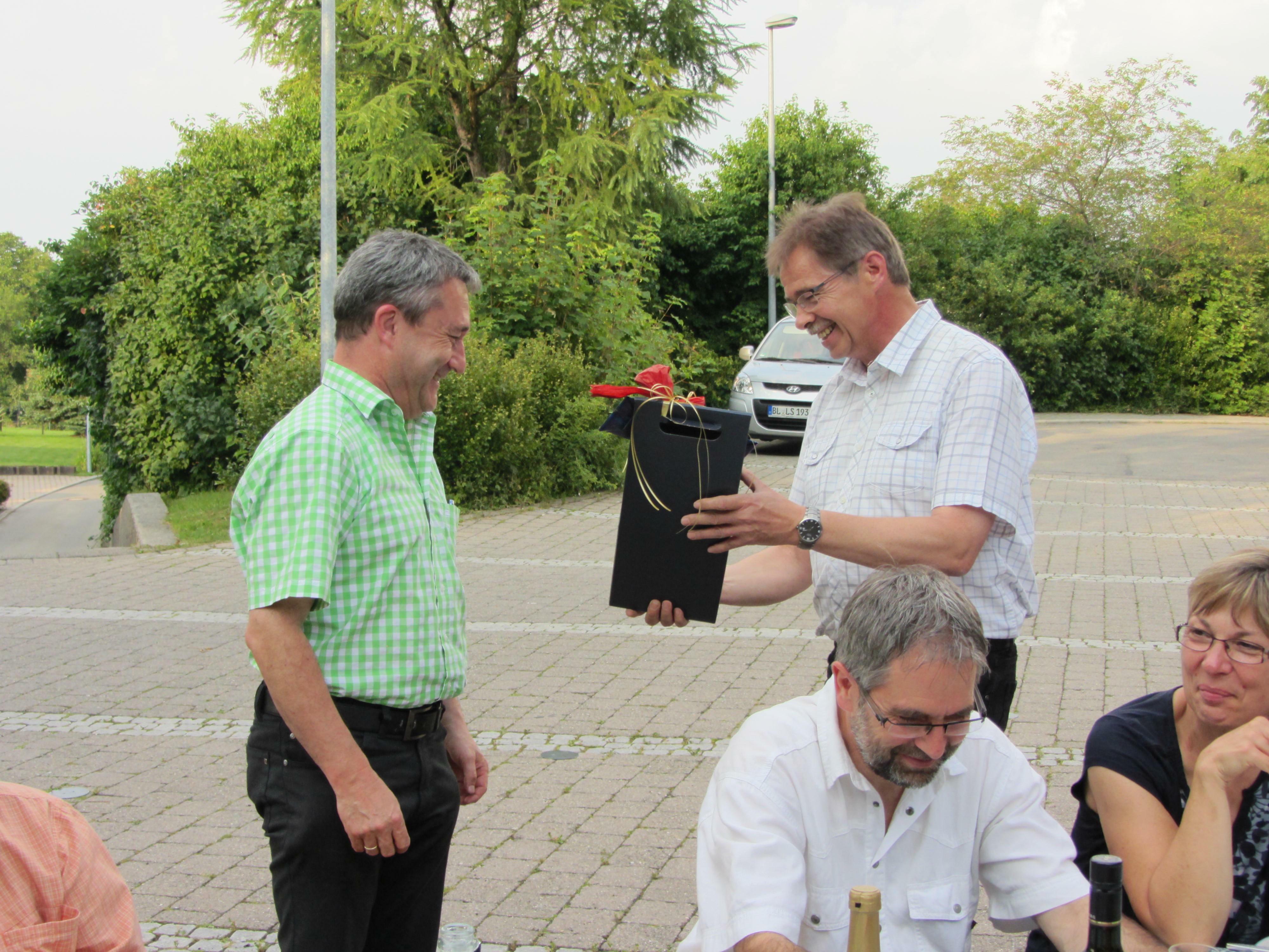 Albert Wochner, unserem derzeitigen Dirigenten, wurde als Dank für seine Tätigkeit ein Geschenk überreicht. Er bleibt uns weiterhin erhalten, wenn Not am Mann, bzw. Not an der Frau ist. Wir hatten schöne Proben und Auftritte mit ihm erleben dürfen.