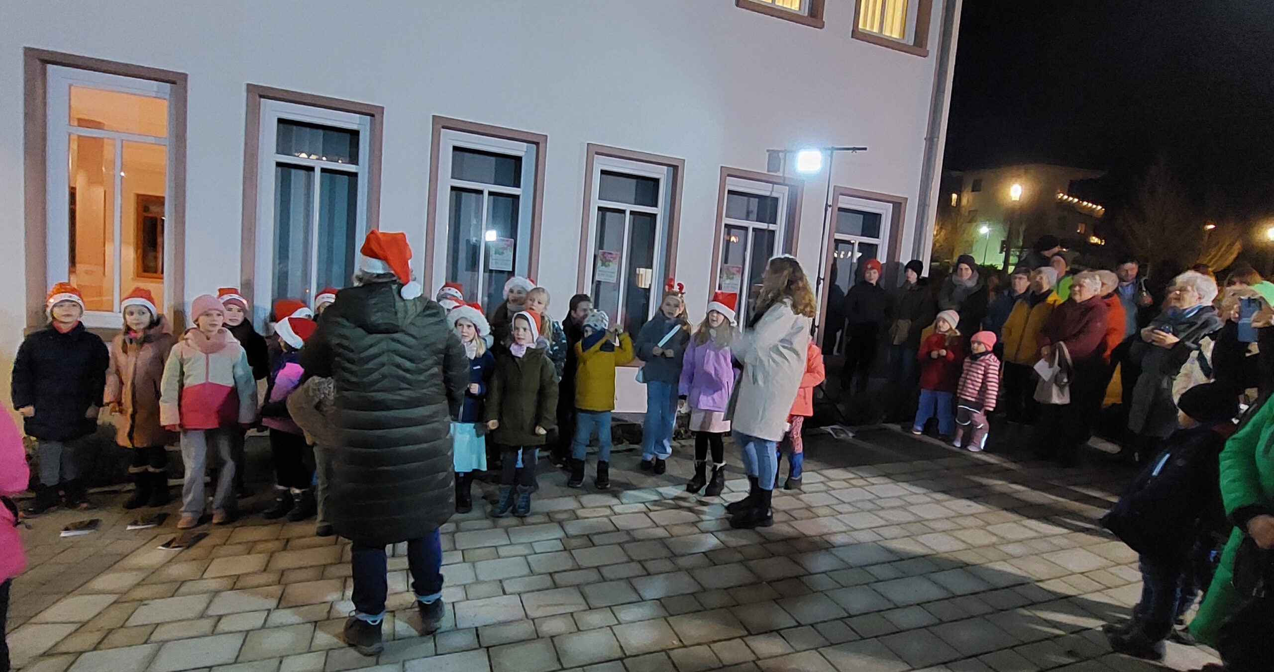 Die Kinder vom Schülerchor strahlten, waren mit Feuereifer dabei und sangen aus vollen Kehlen. Im Laufe des Abends wurde immer wieder zusammen aus einem Notenheft vom Liederkranz mit bekannten Weihnachtsliedern gesungen.